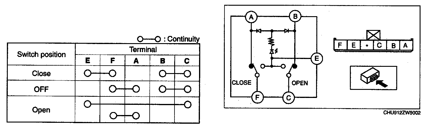 - If not as indicated in the table, replace the power window subswitch.