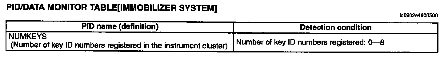 PID/DATA Monitor Table(Immobilizer System):