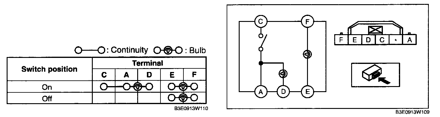 Verify that the continuity between the seat warmer switch terminals is as indicated in the table.