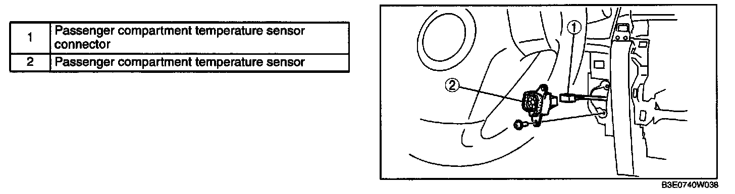 PASSENGER COMPARTMENT TEMPERATURE SENSOR REMOVAL/INSTALLATION