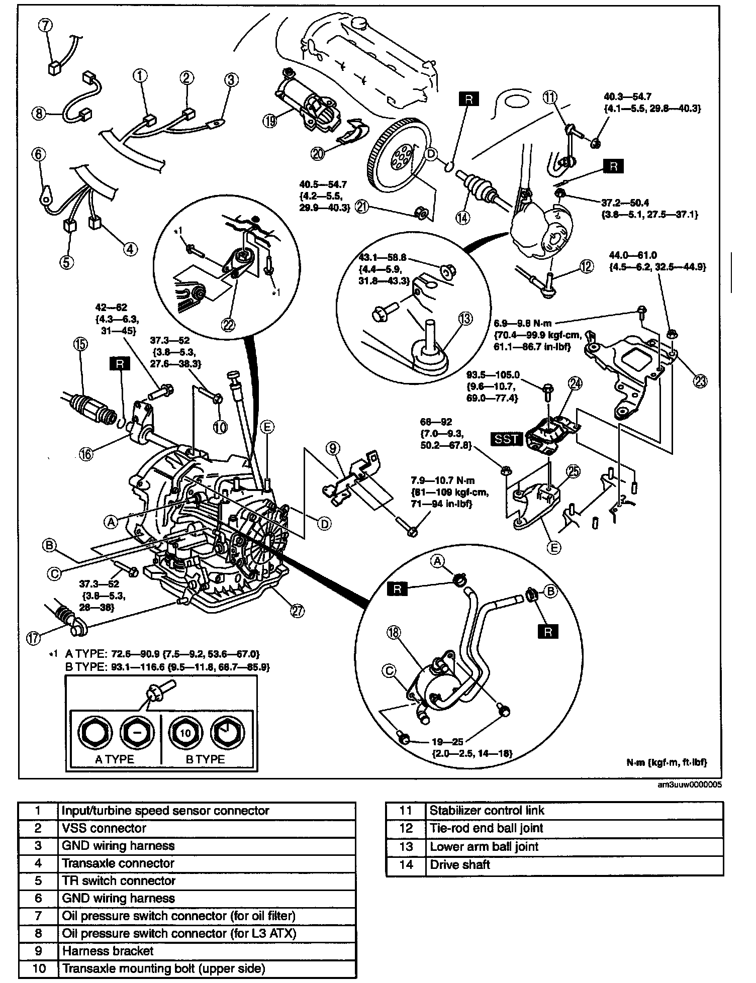 A type: 72.6 - 90.9 N-m (7.5 - 9.2 kgf-m, 53.6 - 67.0 ft-lbf)