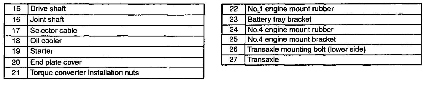 Caution: To prevent the torque converter and transaxle from separating, remove the transaxle without tilting it toward the torque converter.