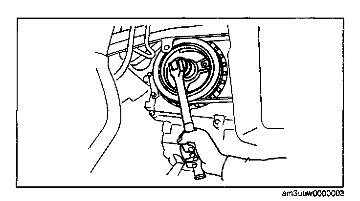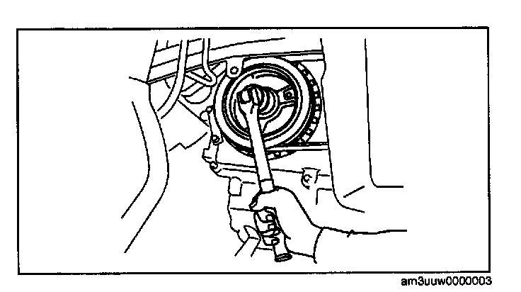 1. Hold the crankshaft pulley to prevent the drive plate from rotating.