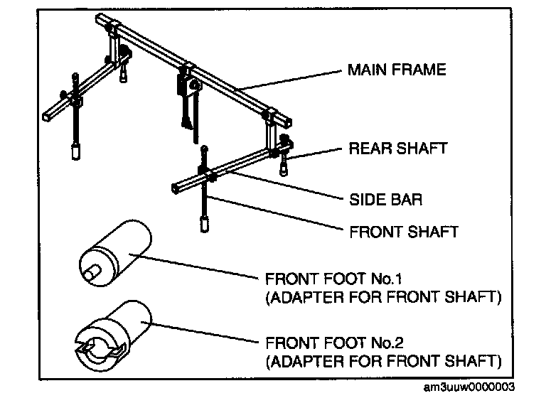 (3) Install front foot No.2 to the left/right front shaft of the SST then align the groove of the front shaft of the SST with the folded up part of the vehicle as shown in the figure.