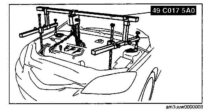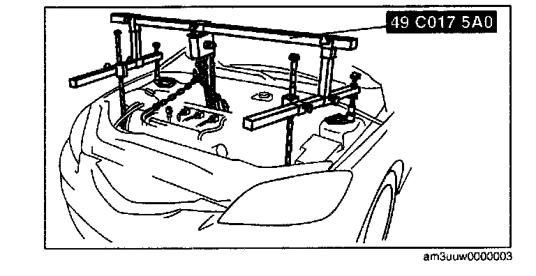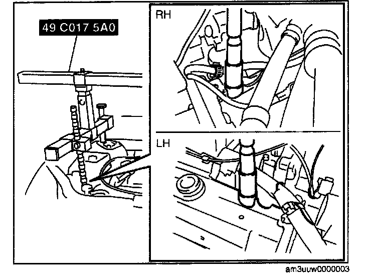 (1) Install the right rear shaft of the SST to the bolt of the right shock absorber as shown in the figure.