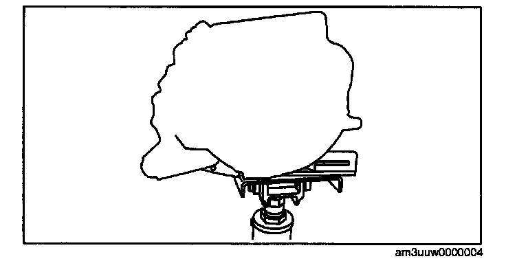 Caution: To prevent the torque converter and transmission from separating, remove the transmission without tilting it toward the torque converter.