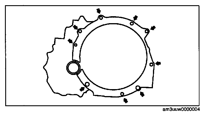 Caution: Loosely and equally tighten the torque converter nuts, then further tighten them to the specified tightening torque.