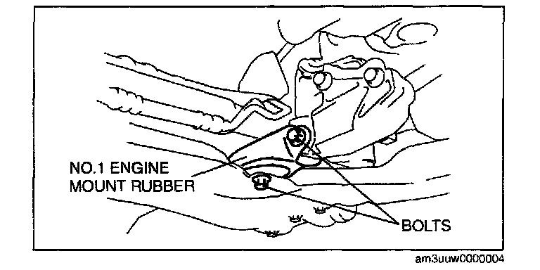 2. Install the No.1 engine mount rubber to the crossmember and temporarily tighten bolts.