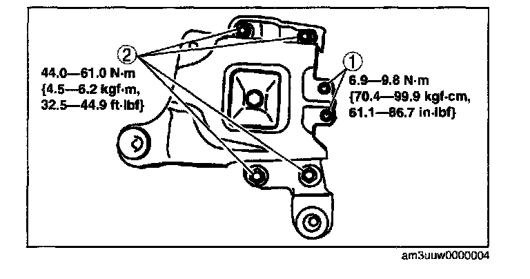 Tightening torque 37.3 - 52.0 N-m (3.8 - 5.3 kgf-m, 27.6 - 38.3 ft-lbf)