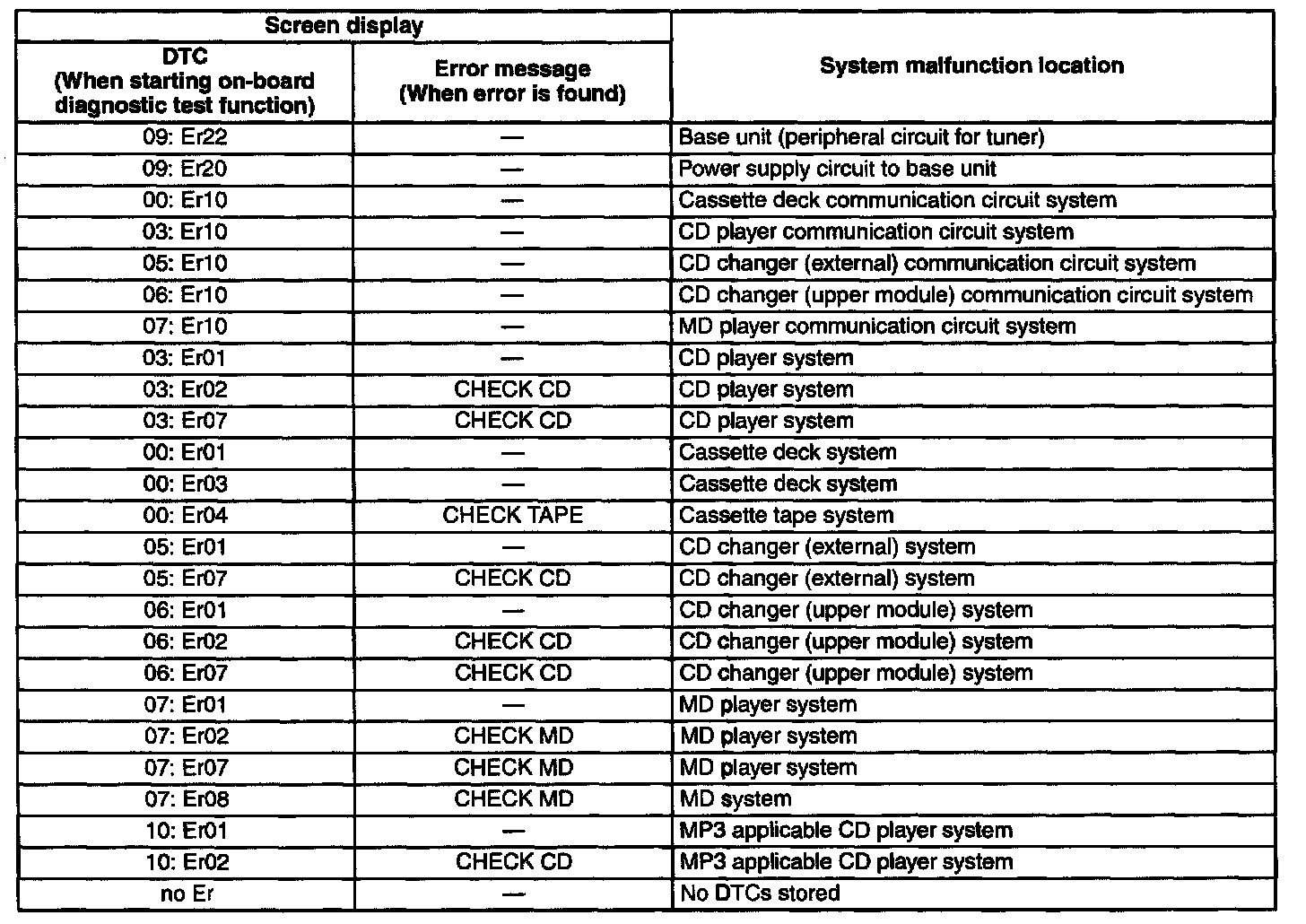 DTC Table(Audio):