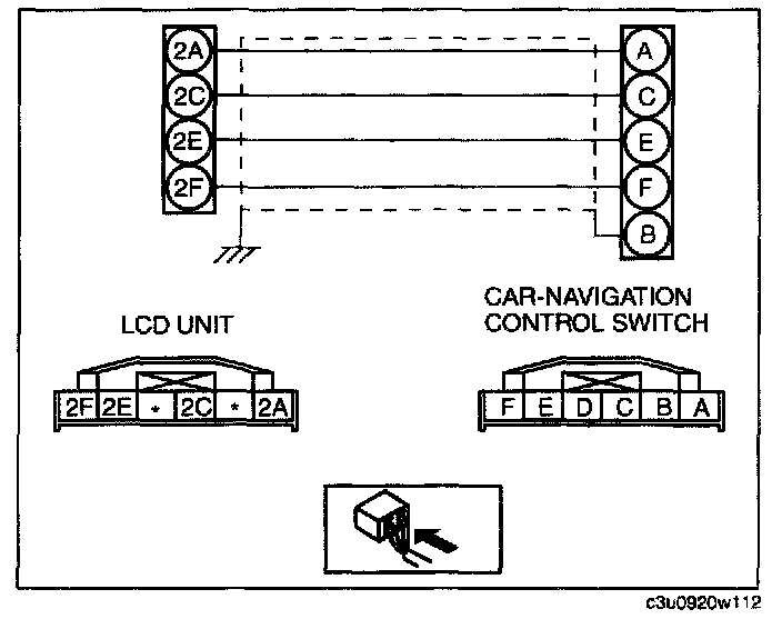2. Inspect the wiring harness between the LCD unit and the car-navigation control switch for an open circuit, power short, or a short to ground.