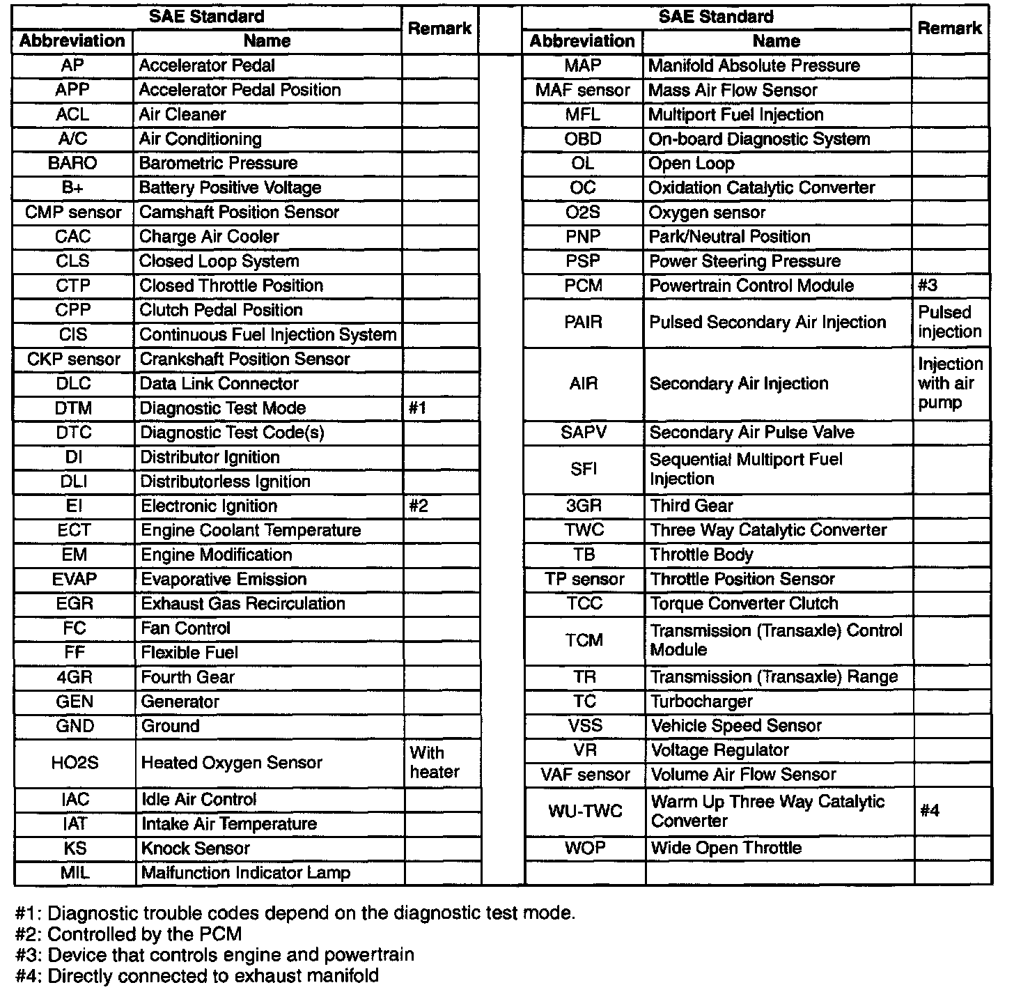 - In accordance with new regulations, SAE (Society of Automotive Engineers) standard names and abbreviations are now used. The table above lists the names and abbreviations that have been used in Mazda manuals up to now and their SAE equivalents.
