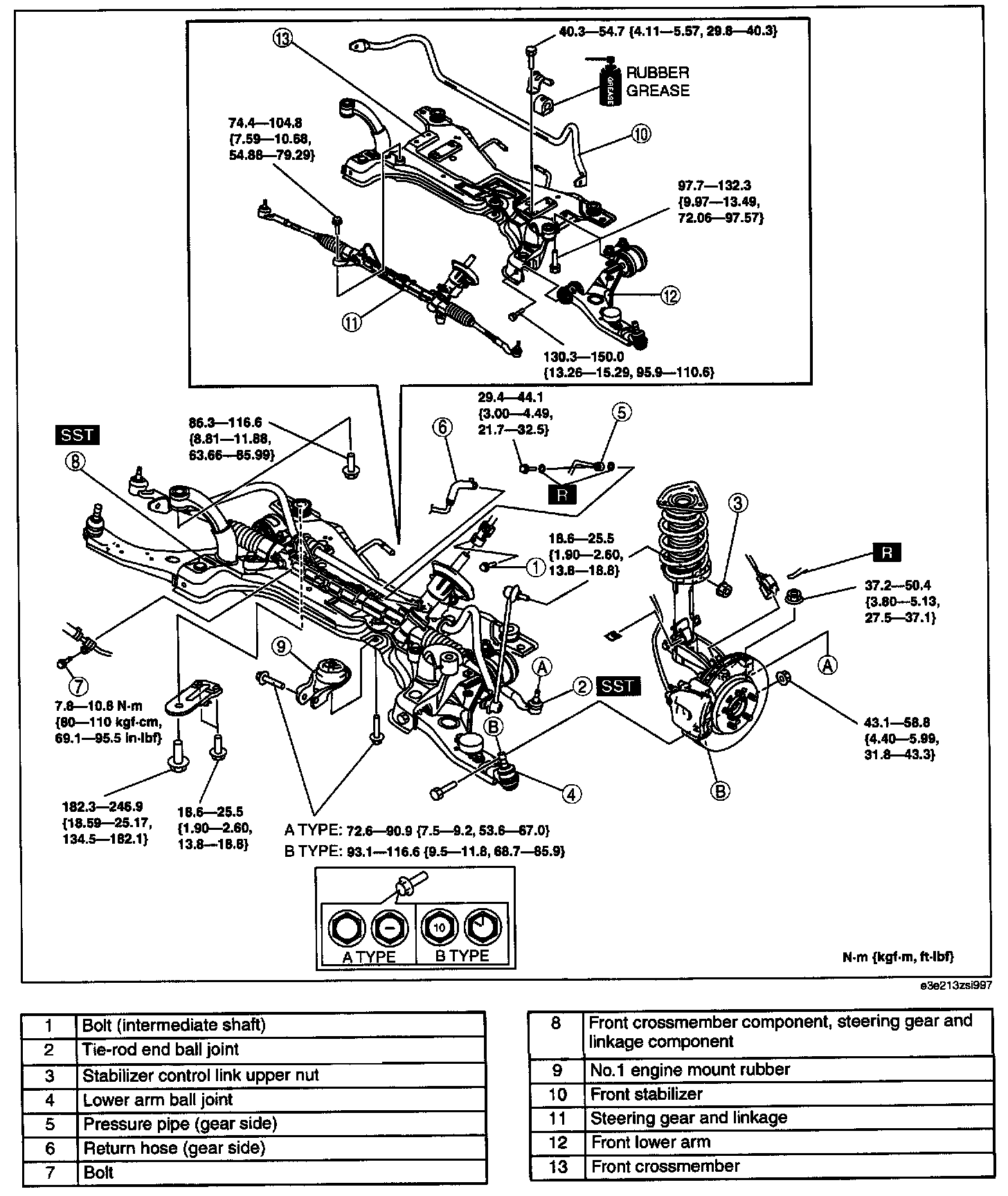 B type: 93.1 - 116.6 N-m (9.5 - 11.8 kgf-m, 68.7 - 85.9 ft-lbf)