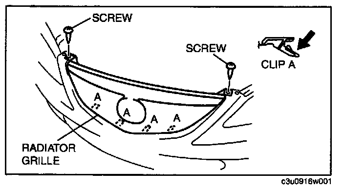 2. Detach clips A and remove the radiator grille.