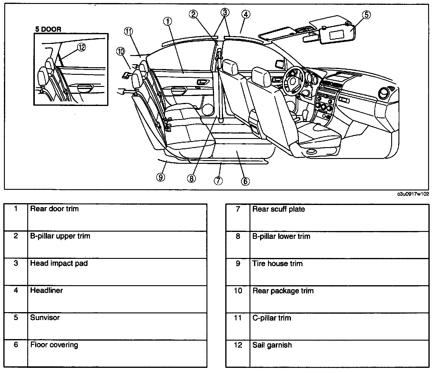 Interior Trim Location Index: