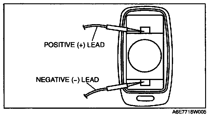 3. While pressing the battery as shown in the figure, press the LOCK and UNLOCK buttons on the transmitter at the same time to start measurement of the voltage.