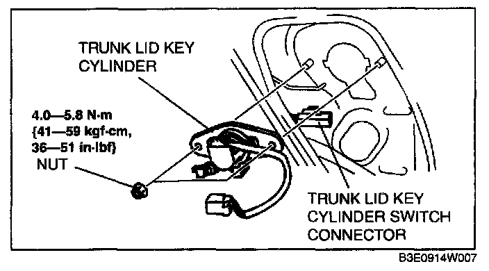 TRUNK LID KEY CYLINDER REMOVAL/INSTALLATION1. Disconnect the negative battery cable.