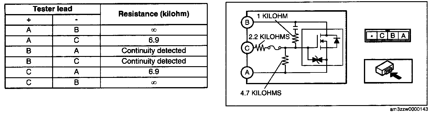 POWER METAL OXIDE SEMICONDUCTOR FIELD EFFECT TRANSISTOR (POWER MOS FET) INSPECTION1. Verify that the continuity between the power MOS FET terminals is as indicated in the table.