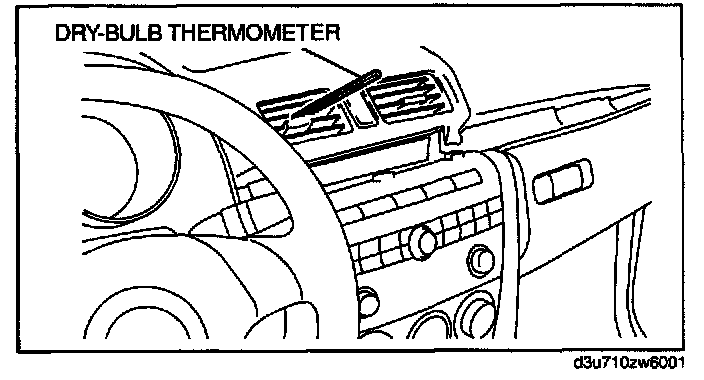 2. Place a dry-bulb thermometer in the driver-side center ventilator outlet.