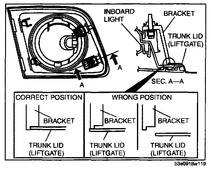 2. Push the bracket onto the trunk lid (liftgate) as shown in the figure and install.