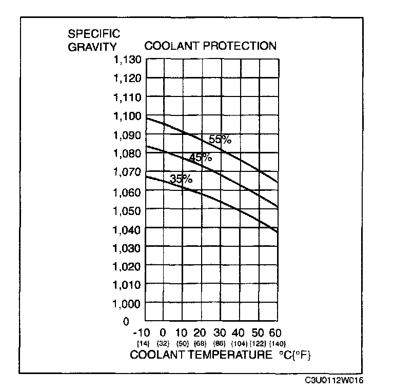 1. Measure the coolant temperature and specific gravity using a thermometer and a hydrometer.