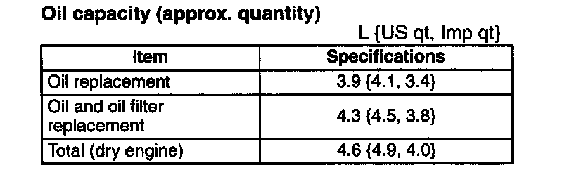 Note: The amount of residual oil in the engine can vary according to the replacement method, oil temperature, etc. Verify the oil level after engine oil replacement.
