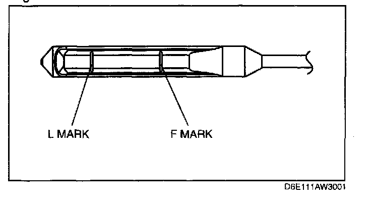 4. Remove the dipstick and verify that the oil level is between the F and L marks on the dipstick.