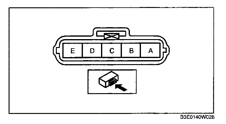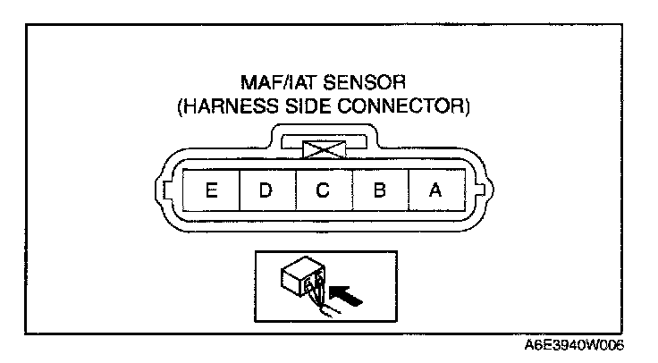 2. Verify that the resistance between MAF sensor terminals D and E is within the specification.