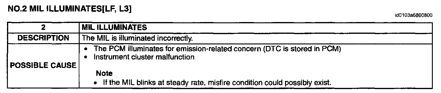 Malfunction Indicator Lamp: Testing and Inspection