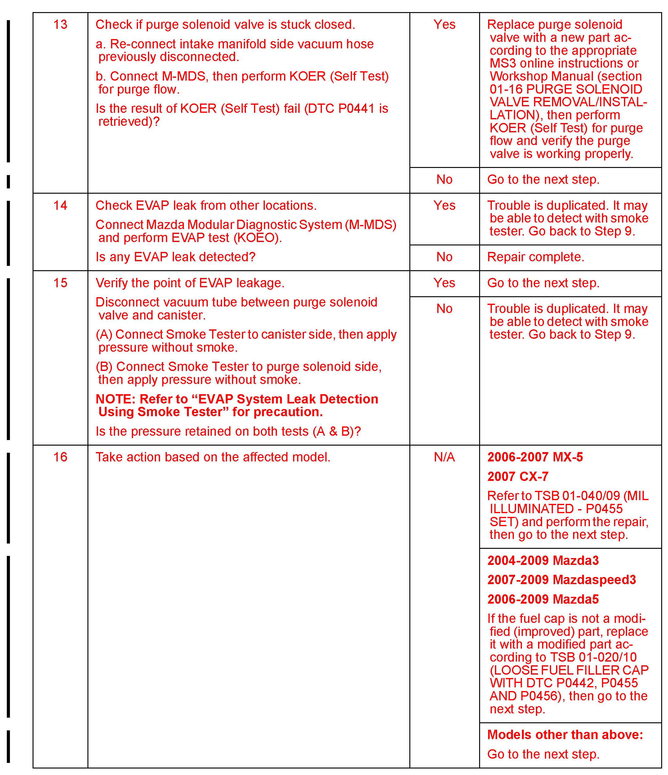Some vehicles may have a MIL illumination with DTC's P0441, P0442, P0455, or P0456 stored in memory. To determine the location of the evaporative system leak, follow the repair procedure below.