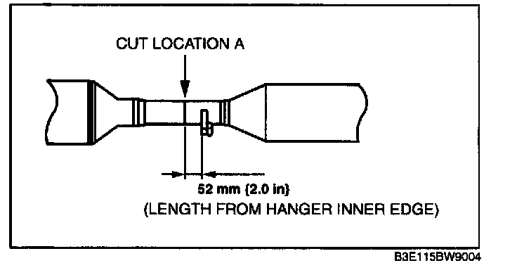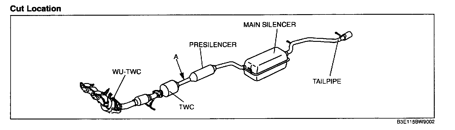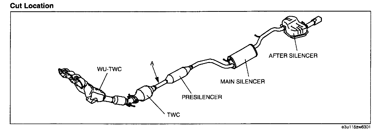 3. Cut the pipe between the TWC and presilencer using the following procedure. (Cut location A)