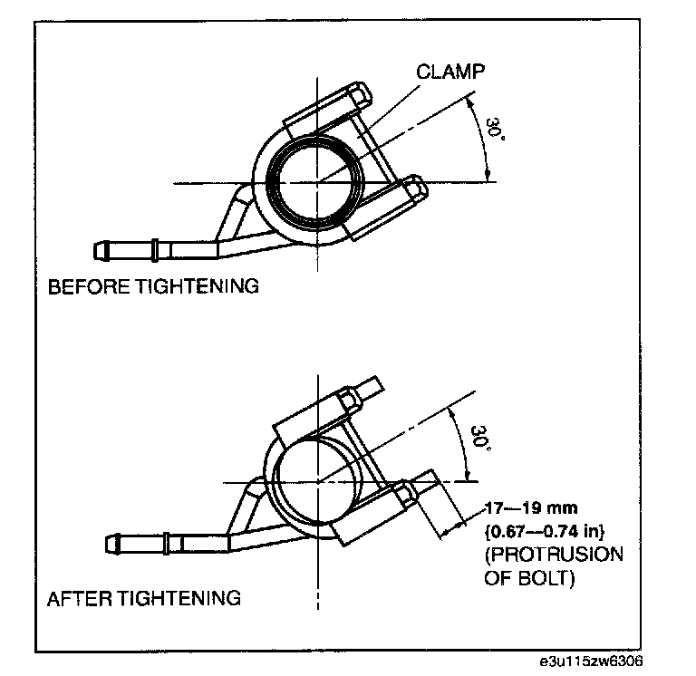 (2) Set the U-shaped bolt so that the clearance between the bolt and surrounding parts is as indicated in the figure.