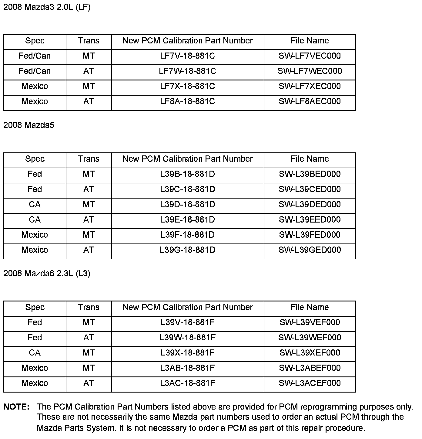 ^ Please be aware that PCM calibration part numbers and file names listed in any Service Bulletin may change due to future releases of IDS software, and additional revisions made to those calibrations for service related concerns.