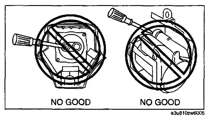 - Inserting a screwdriver or similar object into the connector of an air bag module or a pre-tensioner seat belt may damage the connector and cause the air bag module or the pre-tensioner seat belt to operate (deploy) improperly, which may cause serious injury. Never insert any foreign objects into the air bag module or seat belt connectors.