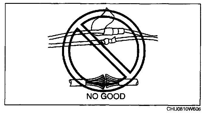 - Incorrectly repairing an air bag wiring harness can accidentally operate (deploy) the air bag module and pre-tensioner seat belts. If a problem is found in the air bag wiring harness, always replace the wiring harness with a new one.