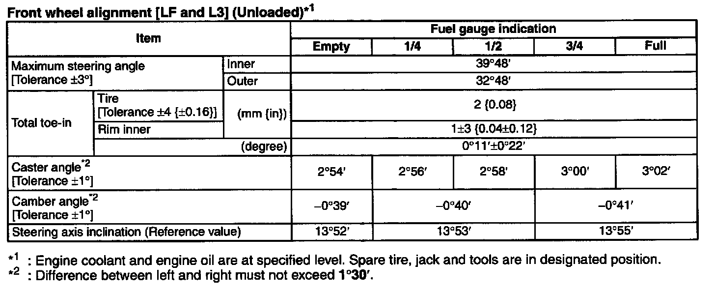 Front Wheel Alignment [LF And L3] (Unloaded):