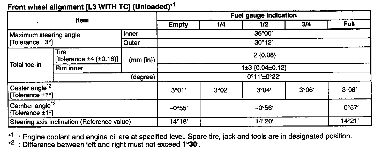 Front Wheel Alignment [L3 With TC] (Unloaded):