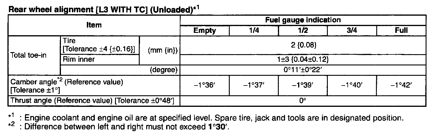 Rear wheel alignment [L3 WITH TC] Unloaded)*1