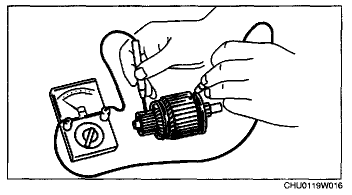 2. Verify that there is no continuity between the commutator and the shaft using a tester.