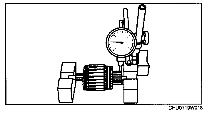 - If not as specified, adjust with an adjustment washer (between drive housing front cover and magnetic switch).