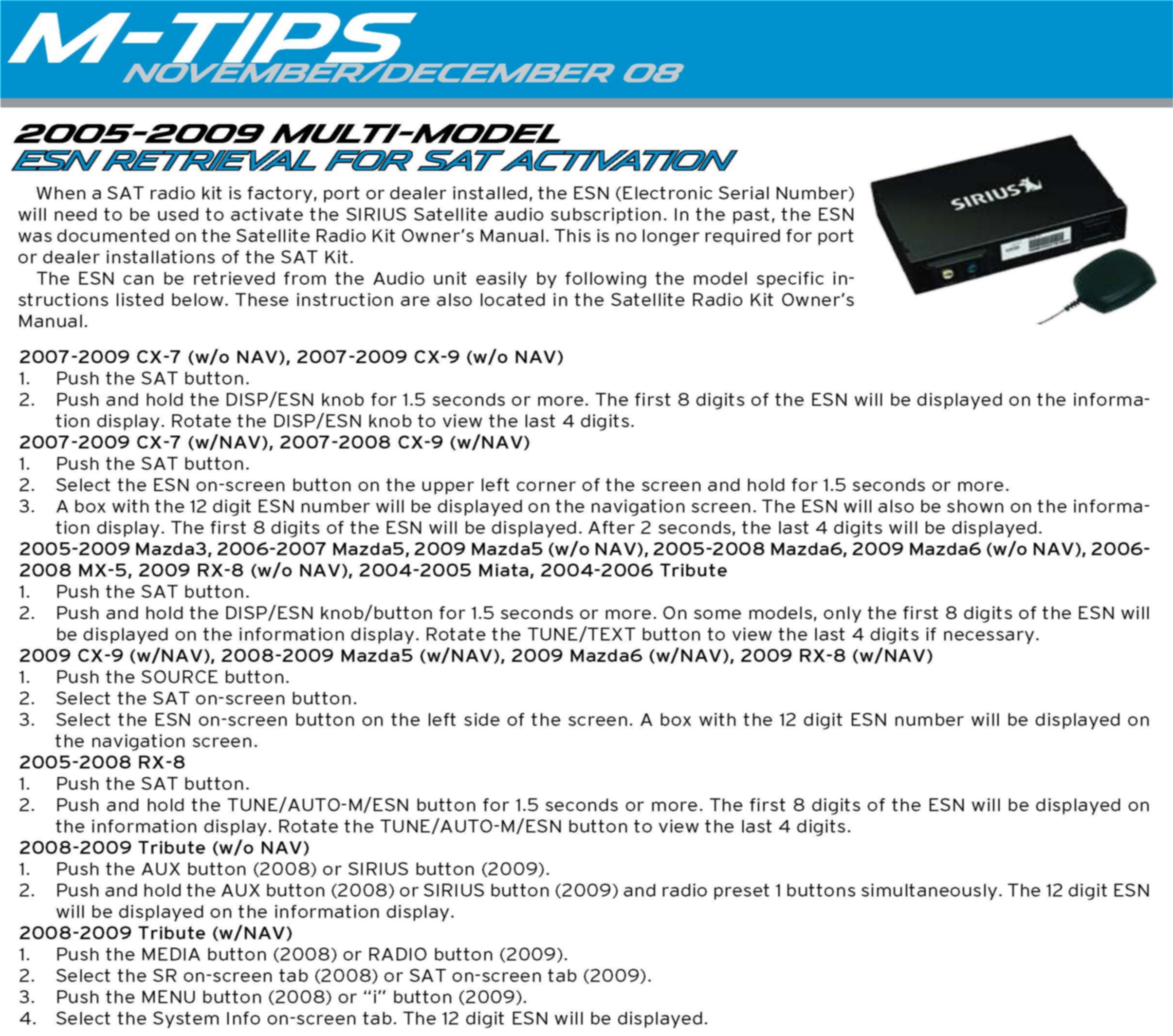 Audio System - Satellite Radio Serial Number Retrieval