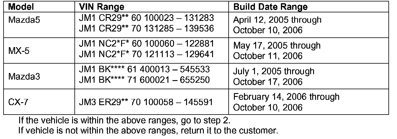 Mazda will notify U.S. owners by first class mail beginning December 1st, 2006.