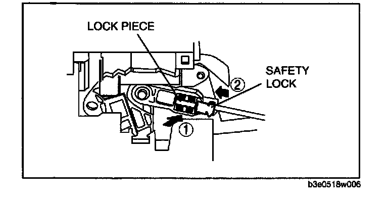 5. Lock the lock piece and safety lock of the selector cable (selector lever side) in the order as shown in the figure.