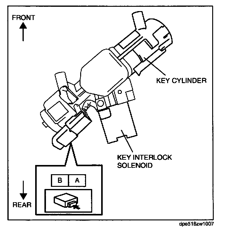KEY INTERLOCK SOLENOID INSPECTION1. Disconnect the negative battery cable.