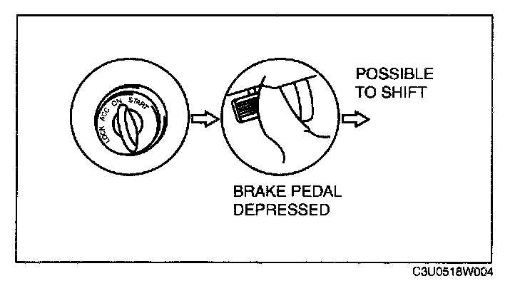 3. Without the brake pedal depressed, verify that the selector lever cannot be shifted from the P position.