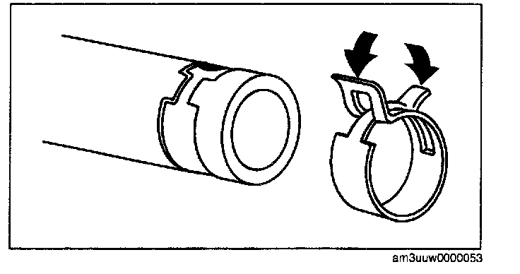 Note: If reusing the hose, install the new hose clamp exactly on the mark left by the previous hose clamp. Then apply force to the hose clamp in the direction of the arrow in order to fit the clamp in place.