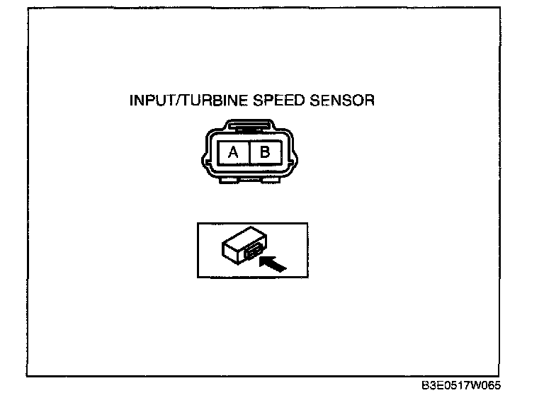 6. Measure resistance between the terminals of the input/turbine speed sensor. If not as specified, replace the input/turbine speed sensor.