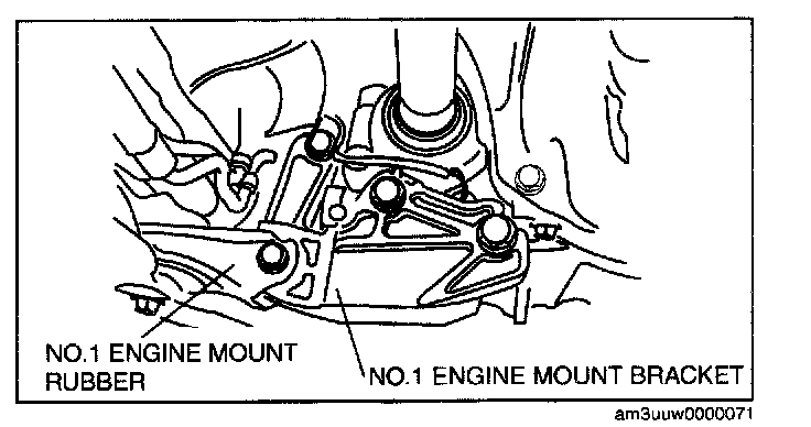 2. Remove the No.1 engine mount rubber and No.1 engine mount bracket.