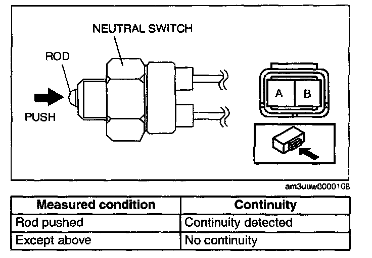 NEUTRAL SWITCH INSPECTION[LF, L3]NOTE: Before performing the following inspection, make sure to follow the procedure as indicated in the troubleshooting flowchart.