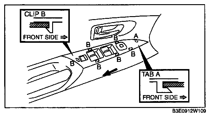 POWER WINDOW MAIN SWITCH REMOVAL/INSTALLATION